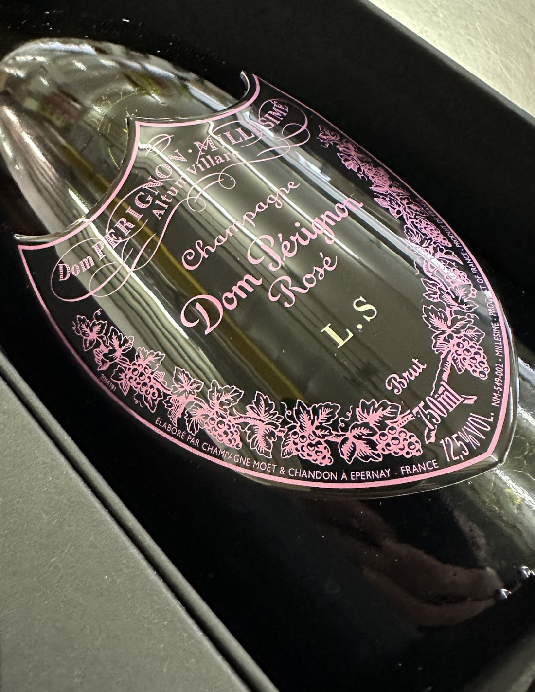 1 Giftbox und 1 Flasche 75 CL, personalisierbar mit 2 Dom Pérignon-Schildern aus Metall mit Gravur von maximal 3 Buchstaben