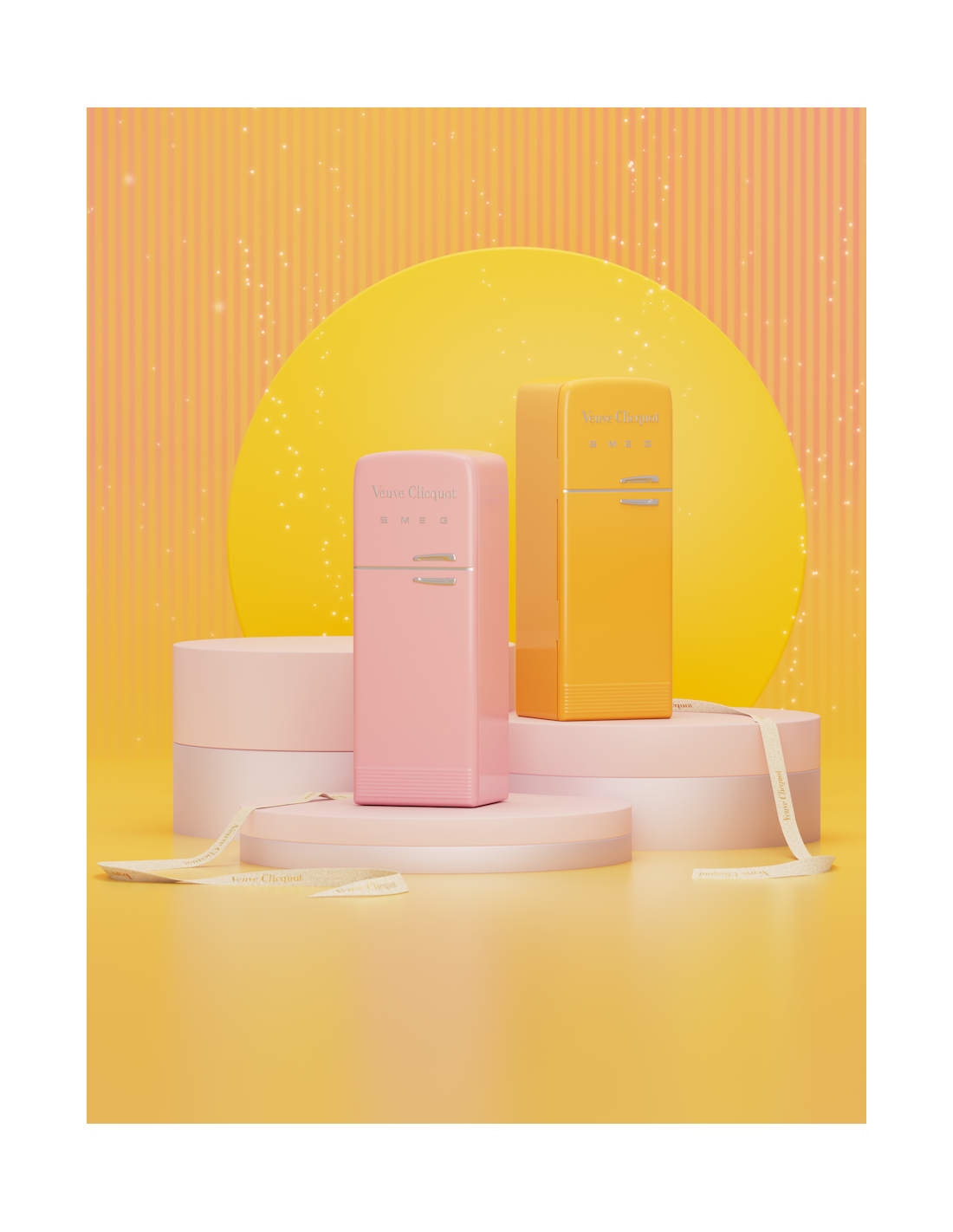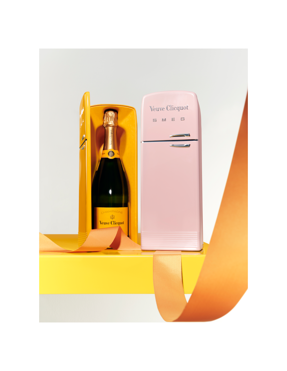 Veuve Clicquot und SMEG haben gemeinsam den Clicquot-Kühlschrank neu gestaltet. Vor fast 12 Jahren entwickelte die Maison in Zusammenarbeit mit SMEG diesen kultigen Mini-Kühlschrank aus 100% Kunststoff und einem nicht herausnehmbaren Innenkeil. Heute überrascht Veuve Clicquot erneut mit einer 100% nachhaltigen Kreation. Der neue Veuve Clicquot x SMEG Clicquot Fridge verkörpert den kreativen Geist von Veuve Clicquot und seine Fähigkeit, alltägliche Gegenstände aus ihrem Kontext herauszulösen, Pionierarbeit im Industriedesign zu leisten und Ihre Flasche bis zu zwei Stunden lang kalt zu halten. Der Mini-Kühlschrank hat auch einen zweiten Lebenszweck und ist zu 100 % plastikfrei.