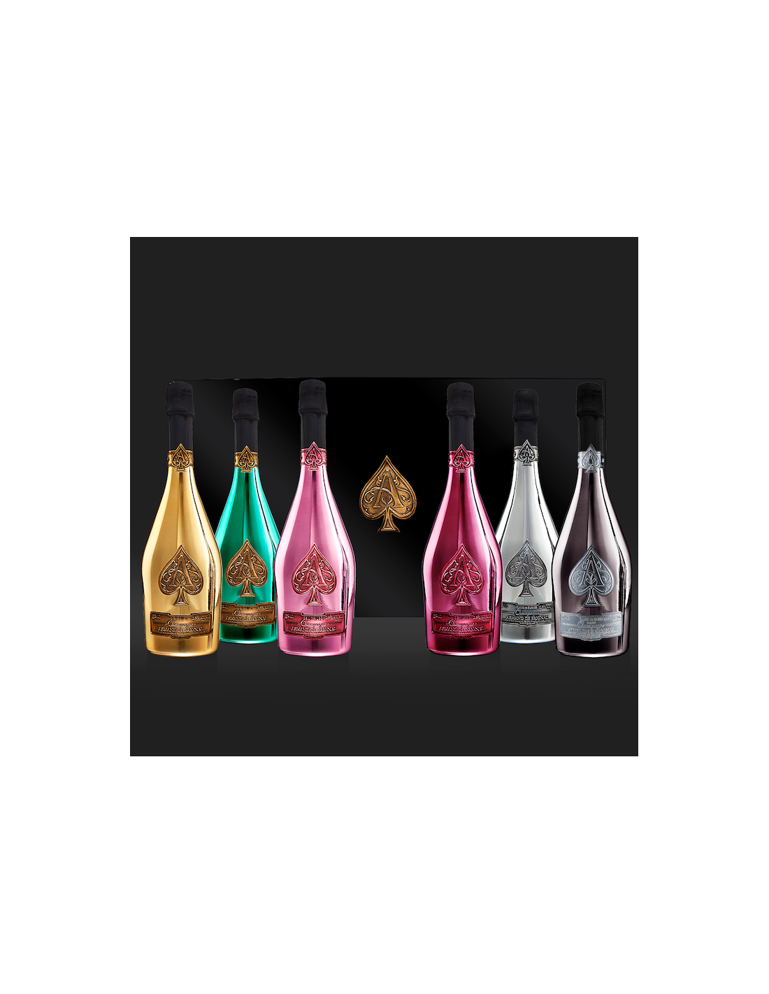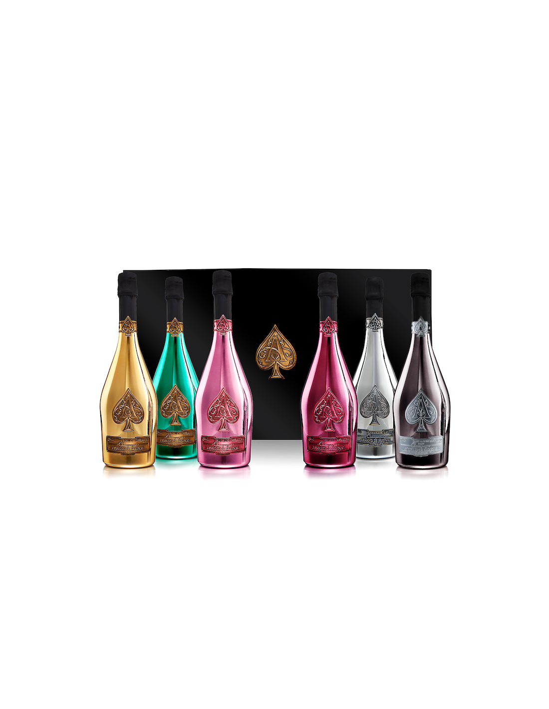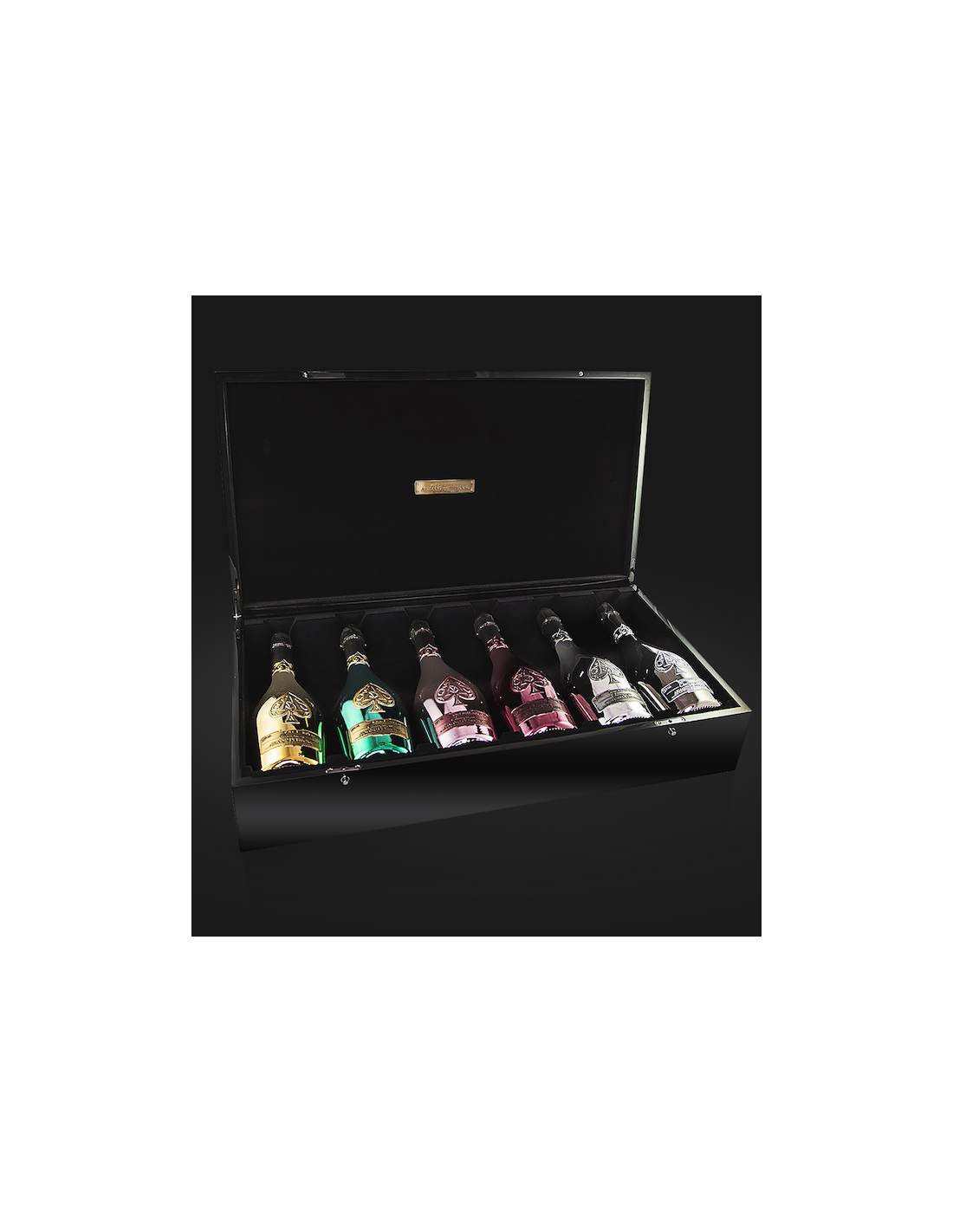 Seulement 820 unités ont été créées, et chaque coffret est numéroté individuellement. Le coffret limité comprend (1) bouteille de 750 ml de chaque Blanc de Noirs, Brut Gold, Green, Rose, Demi Sec, Blanc de Blancs du Champagne Armand de Brignac. Cette offre sera lancée via La Collection, l'ultime édition de prestige pour les collectionneurs.