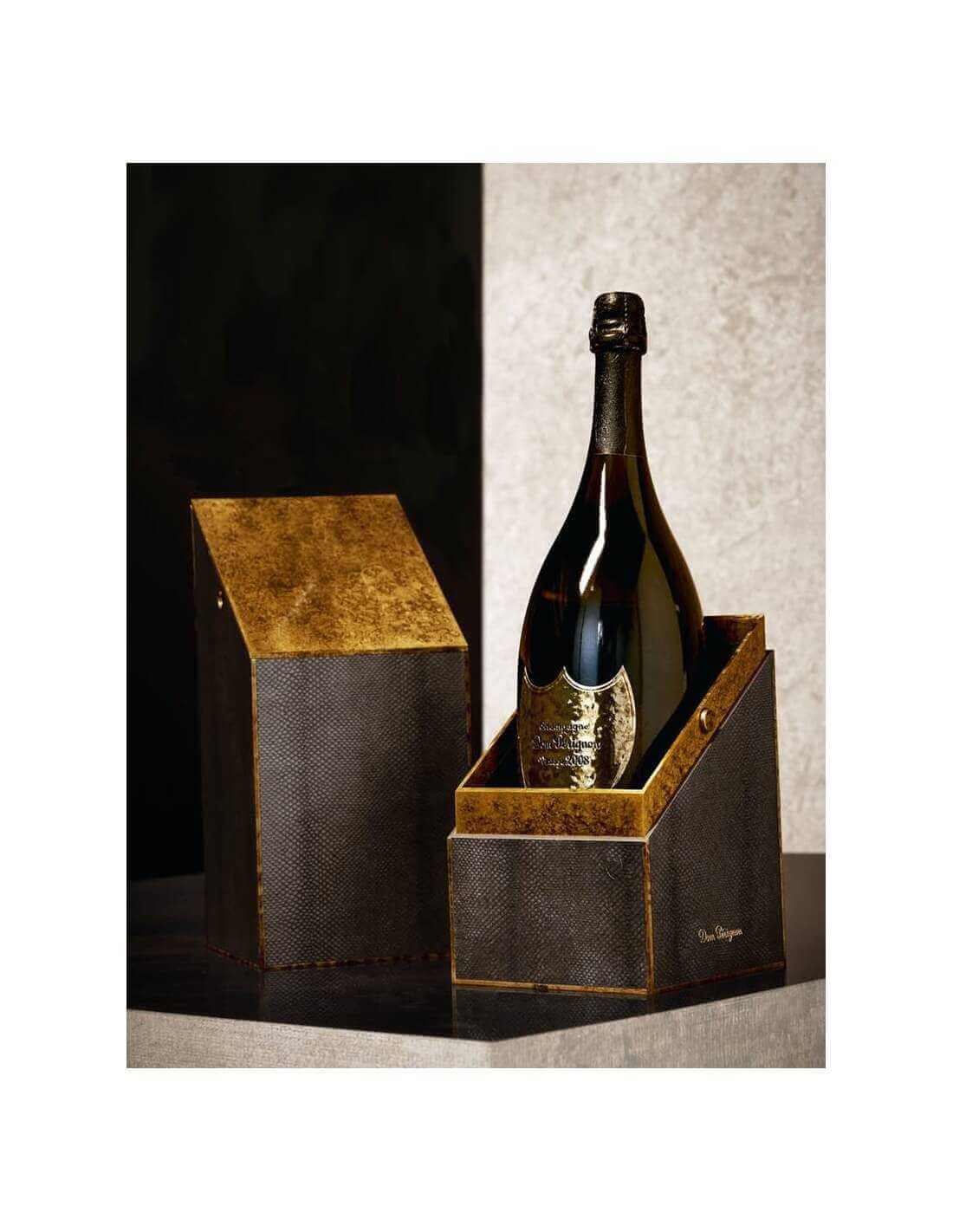 Designer, fondateur du Studio Kravitz Design, Lenny Kravitz revisite la bouteille iconique et réinterprète son emblématique blason, travaillé en métal martelé. Misterchampagne vous propose une édition ultra-limitée du magnum Dom Pérignon Vintage 2008 signé par l'artiste. Sa structure est un monolithe de laiton patiné, recouvert de cuir façon serpent, doublé à l’intérieur d’un velours vert sombre. L’écrin témoigne des influences mid-century de l’artiste.