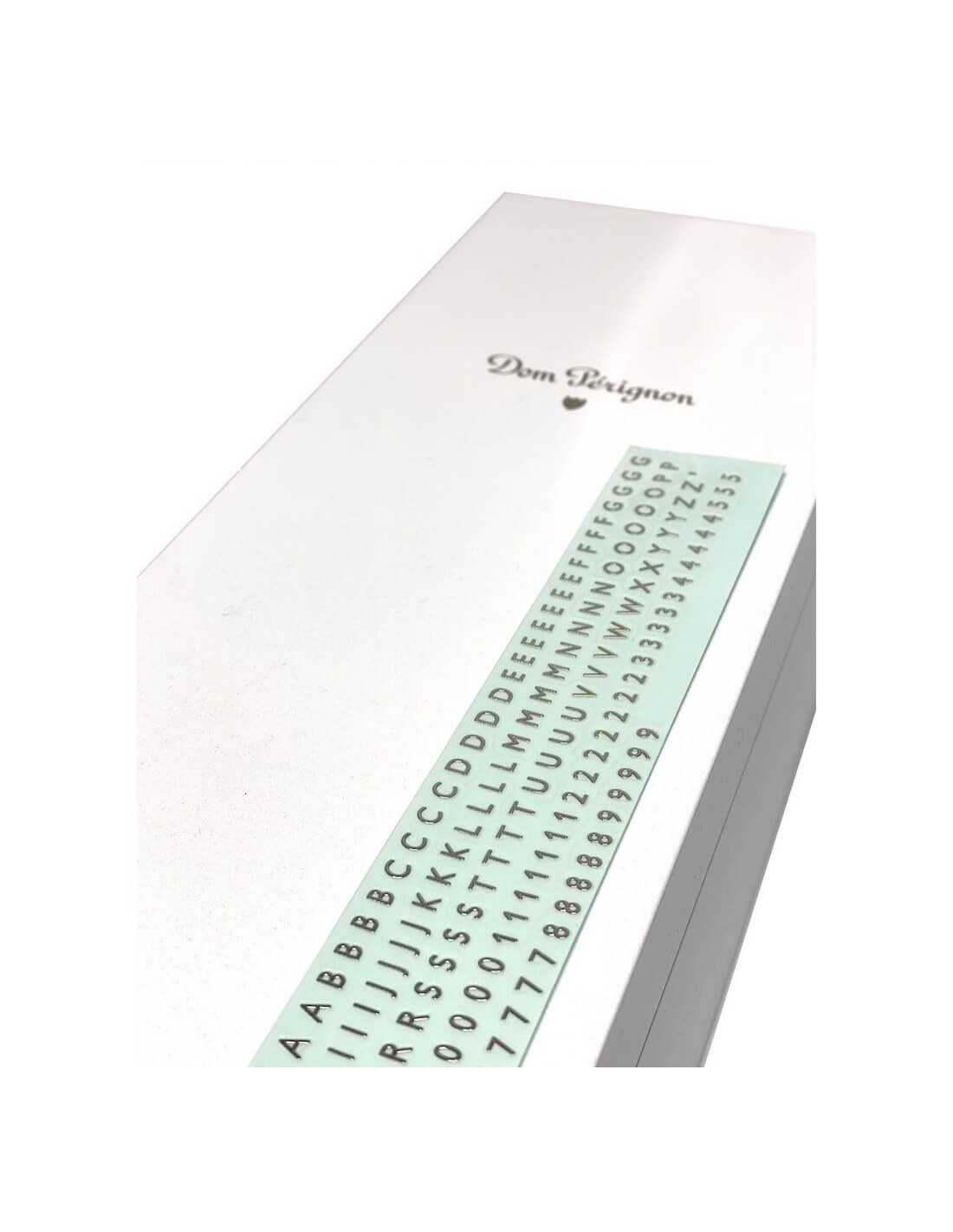 Limited Edition "Wedding" - Vous recevez dans ce magnifique coffret des lettres et numéros argentés autocollants vous permettant de personnaliser votre bouteille Dom Pérignon Vintage 2010