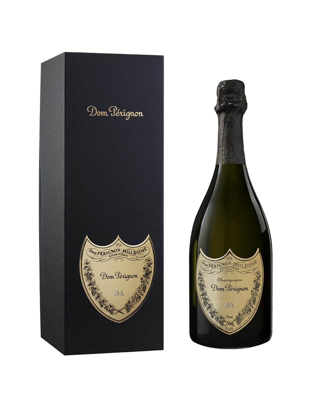 1 Giftbox et 1 bouteille 75 CL personnalisables avec 2 boucliers Dom Pérignon en métal avec gravure de 3 lettres maximum