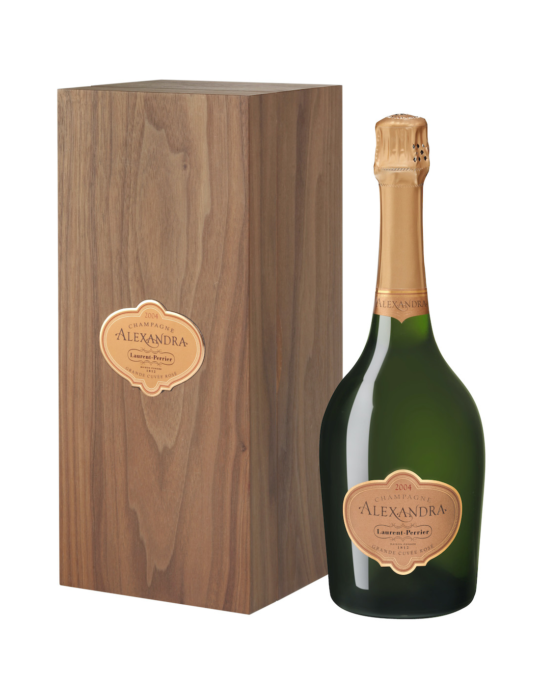 Laurent-Perrier, auteur d’un champagne rosé non millésimé de référence se devait aussi de proposer une cuvée de prestige de rosé. Alexandra Rosé est un vin rare et recherché qui provient d’une sélection rigoureuse des meilleures parcelles, un mariage d’exception entre les Grands Crus de Pinot Noir et de Chardonnay. L’année 2004 : malgré des épisodes de grêle et des orages durant le printemps et l’été, la chaleur bénéfique et le temps sec de septembre ont permis une récolte abondante et de belle maturité en Chardonnay et en Pinot Noir, même si ce dernier a été plus hétérogène.