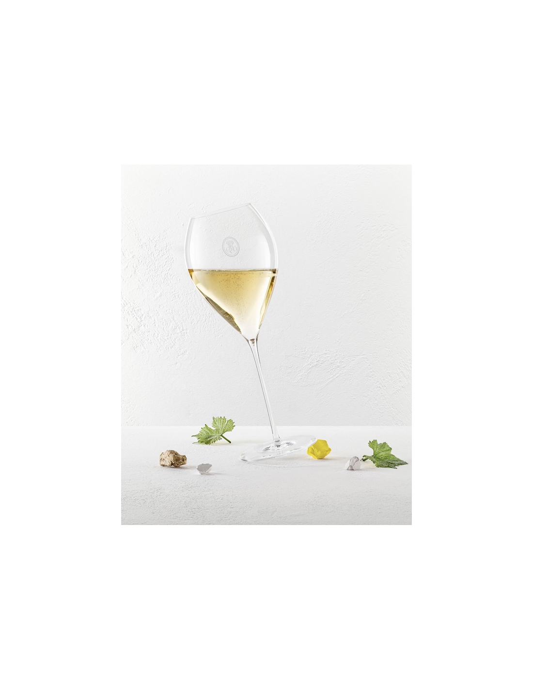 Bouquet pur, élancé, vertical, riche et concentré. On est dans l’évocation d’arômes mûrs mais de grande finesse: zestes d’agrumes fins et délicats (citron, orange), vanille (vanille bourbon de Madagascar) et des nuances plus chaudes de pomme au four, de tatin qui s’ouvrent progressivement vers le nougat.