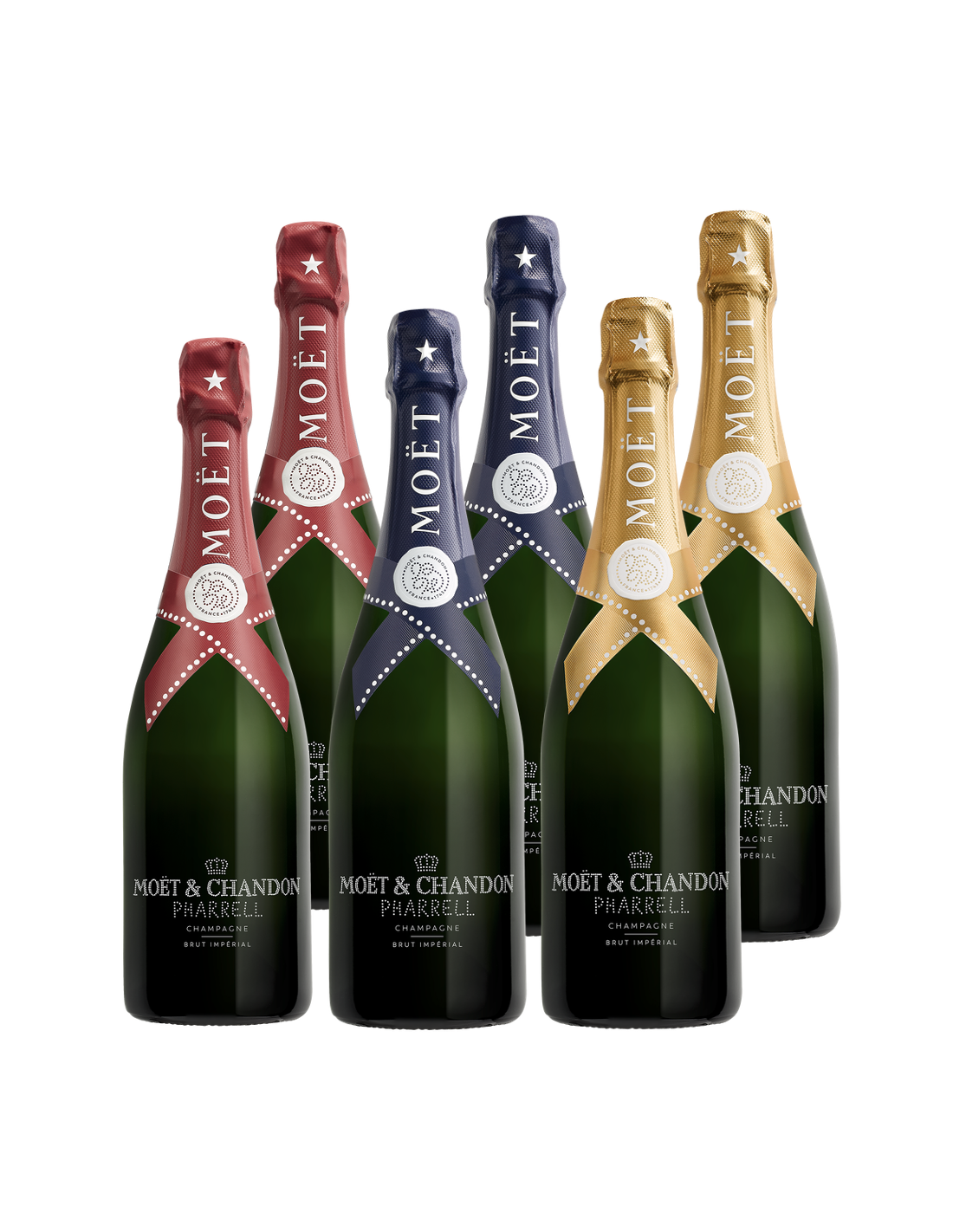 Moët & Chandon x Pharrel Williams 6 Giftbox Brut Impérial 75 cl - 2 "DEEP RED" + 2 "GOLD" + 2 "MIDNIGHT BLUE"