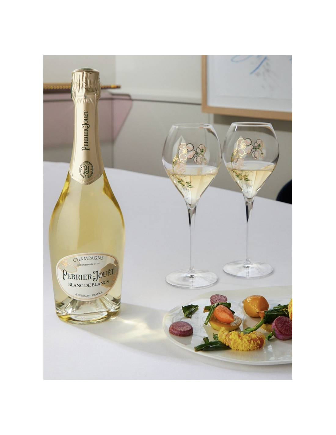Perrier-Jouët Blanc de Blancs est un un champagne vif et spontané, frais et floral qui associe des notes d’agrumes vifs à celles de fleurs fraîches. La cuvée est un hommage au Chardonnay, cépage qui interprète le style unique de la Maison Perrier-Jouët, tout en finesse et en élégance, tout en charme et générosité.