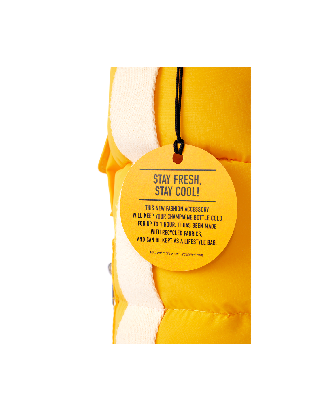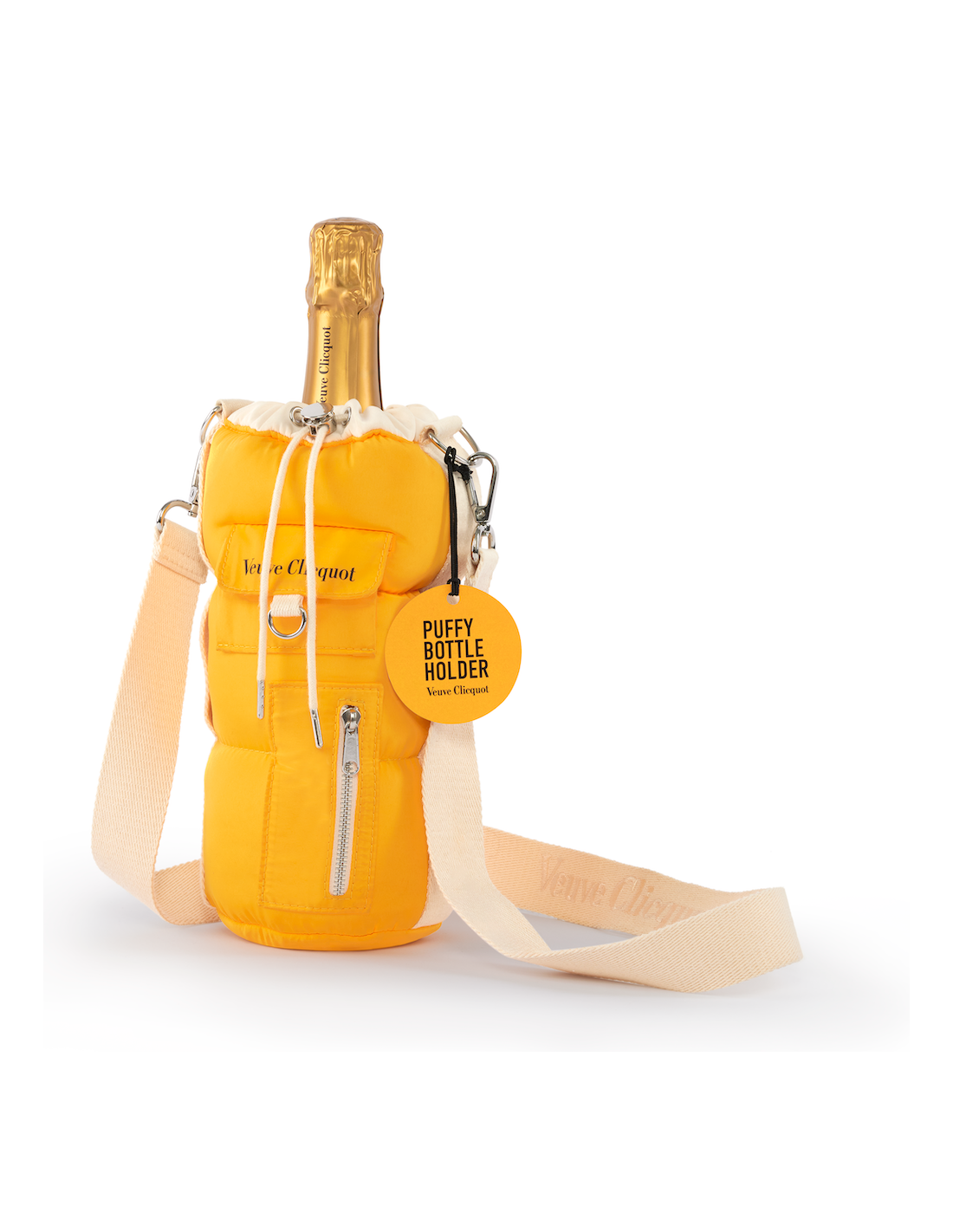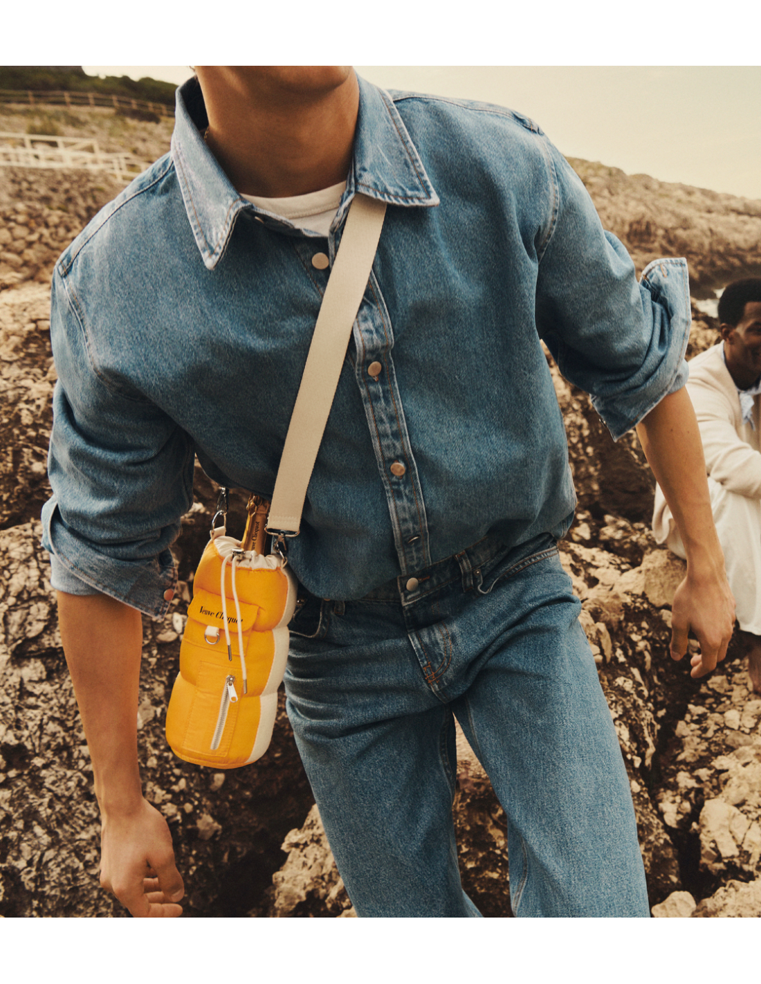 Conçu spécialement pour transporter une bouteille de Yellow Label ou de Rosé, ce nouvel objet fonctionnel peut être porté en bandoulière ou à l’épaule. Nomade mais également pratique, il conserve le champagne à température idéale pendant une heure, un essentiel pour un pique-nique.