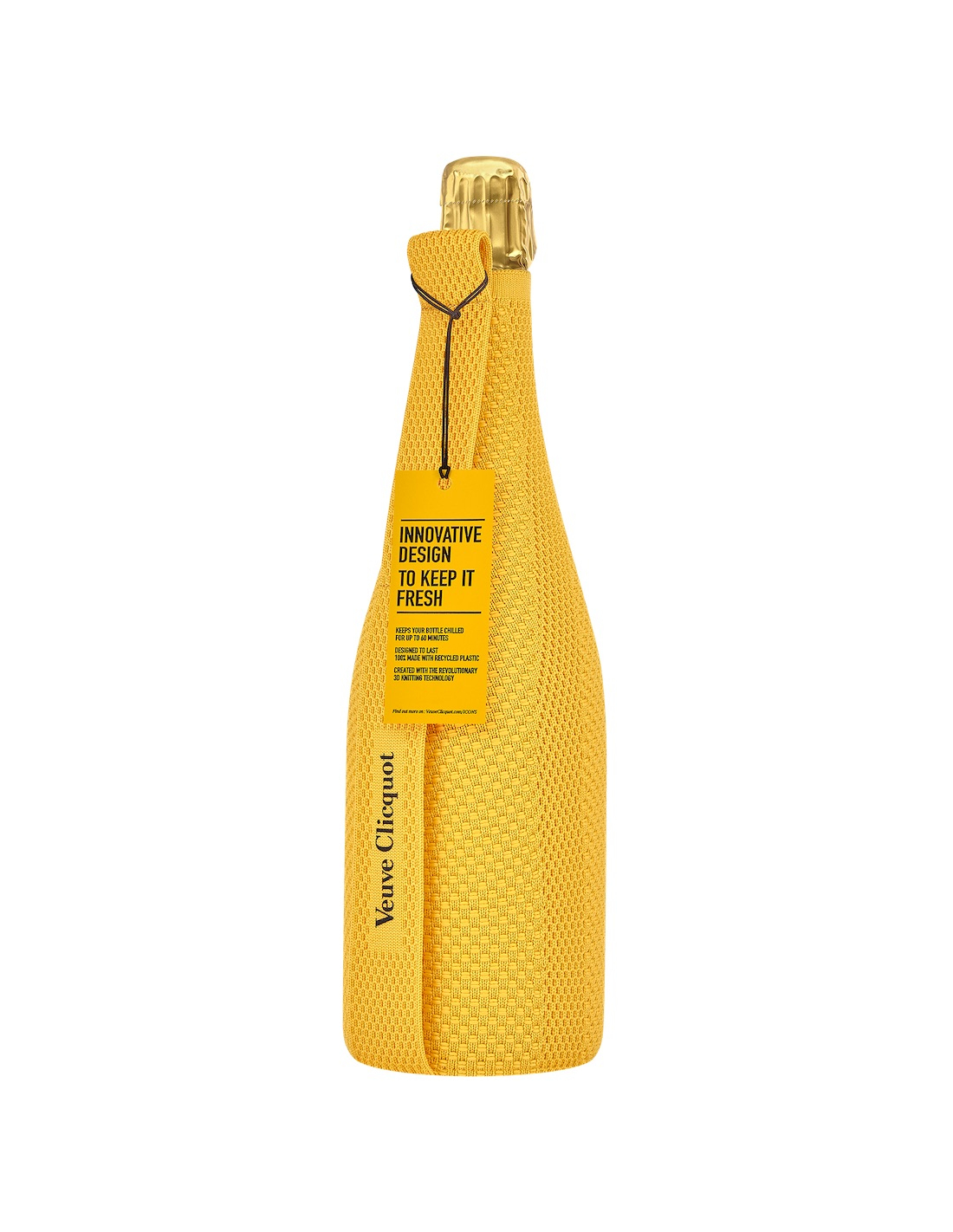 Gardez votre bouteille de Veuve Clicquot au frais dans les deux sens du terme avec cette élégante veste à glace réutilisable, fabriquée de manière durable à partir de plastique 100 % recyclé grâce à la technologie du tricotage 3D sans déchets.