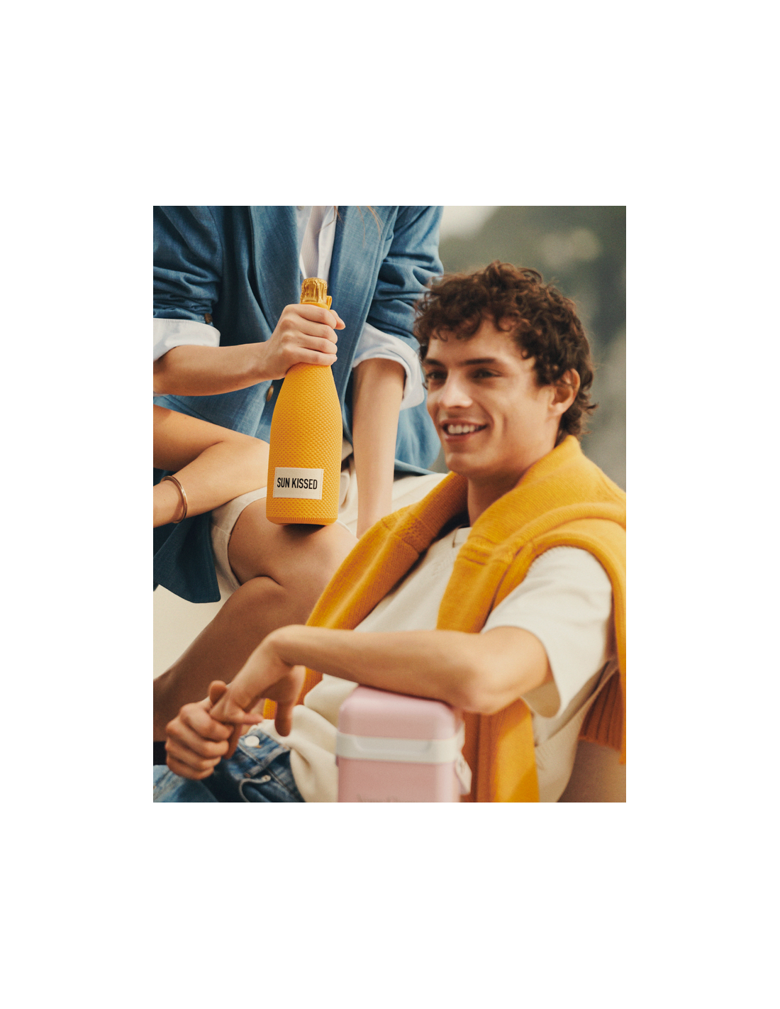 Ce nouvel objet, développé spécialement pour les pique-niques, est facilement transportable grâce à sa poignée en chrome et garde le champagne à bonne température jusqu’à une heure. Elle est proposée en deux coloris au choix – rose ou jaune – pour rappeler les étiquettes de ses champagnes Brut et Rosé.