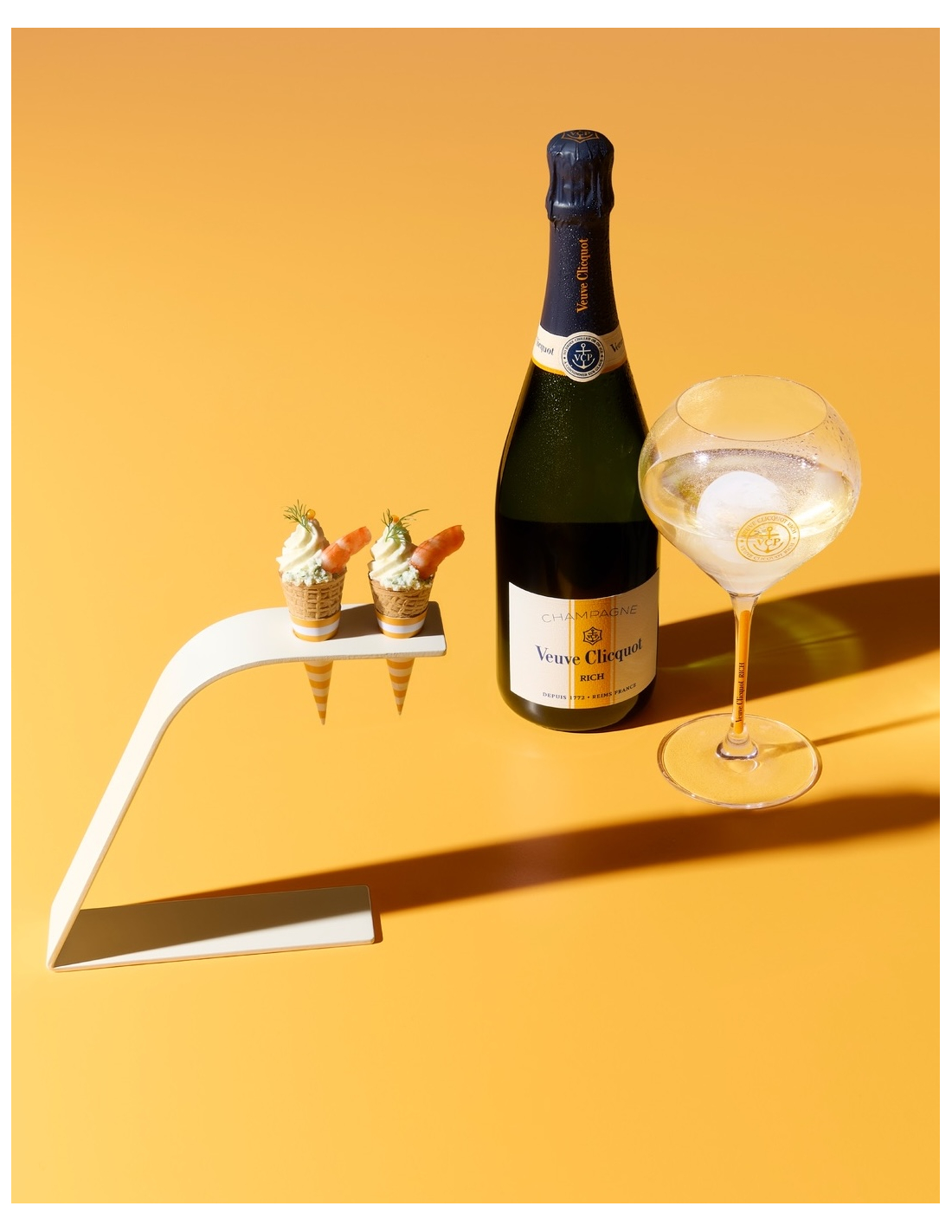 Avec ce nouveau Rich, Veuve Clicquot associe des saveurs fraîches et fruitées tout en restant fidèle au style de la Maison. L'assemblage et la liqueur de dosage font de ce champagne l'expression même du plaisir gourmand, où des notes de fruits blancs et d'agrumes se marient parfaitement avec sa douceur. RICH a été spécialement conçu pour être servi frais ou sur glace, pour des moments de convivialité inoubliables.