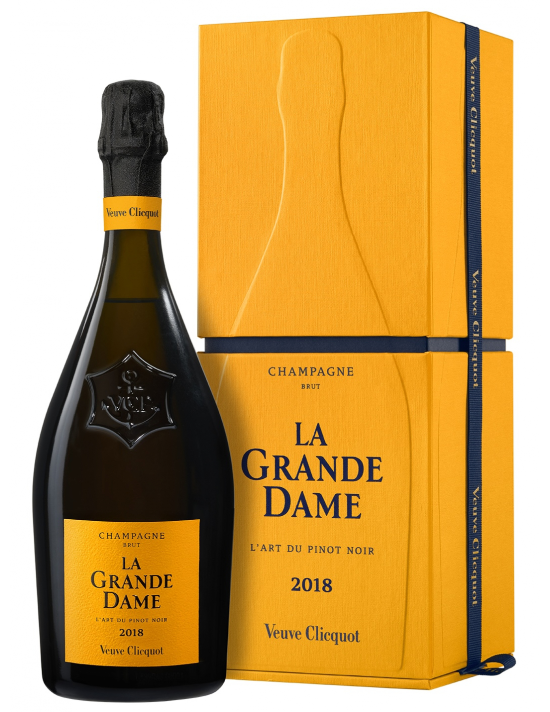 Set 2 verres Prestige avec logo Veuve Clicquot gravé sur le pied & 1 coffret cadeau 75 cl La Grande Dame Vintage 2018 Brut