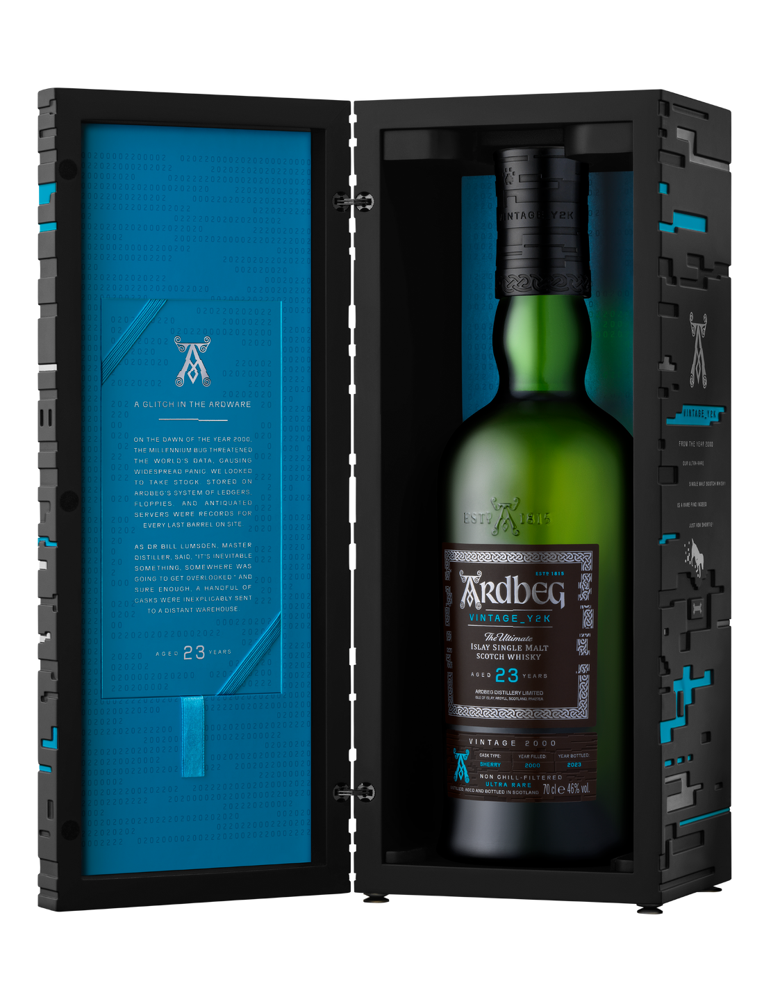 Vous souvenez-vous de l'an 2000 ? Une période de frénésie et de panique autour du bogue du millénaire. Partout, les gens devenaient fous et prédisaient le chaos informatique, l'effondrement numérique et la fin de tout. Pour Ardbeg, l'année 2000 a été une année mémorable. Bill et l'équipe de création de whisky ont utilisé leur magie sur ce stock rare.Ardbeg Vintage Y2K est une série de productions limitées de l'année 2000. Combinant l'ancien et le nouveau, elle associe des techniques modernes et innovantes de production de whisky tout en utilisant les anciens alambics Ardbeg. Bien qu'il n'y ait pas deux Ardbeg identiques, les liquides de Vintage_Y2K sont une véritable anomalie fumée, une histoire qui ne pourra jamais être reproduite