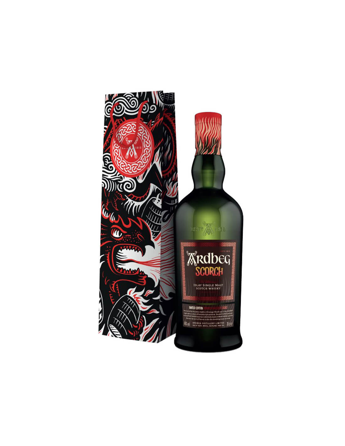 Pour sa nouvelle édition Scorch, Ardbeg s’appuie sur une légende selon laquelle un dragon occuperait l’entrepôt 3 de la distillerie et projetterait un souffle chaud de saveurs brûlantes et calcinées.