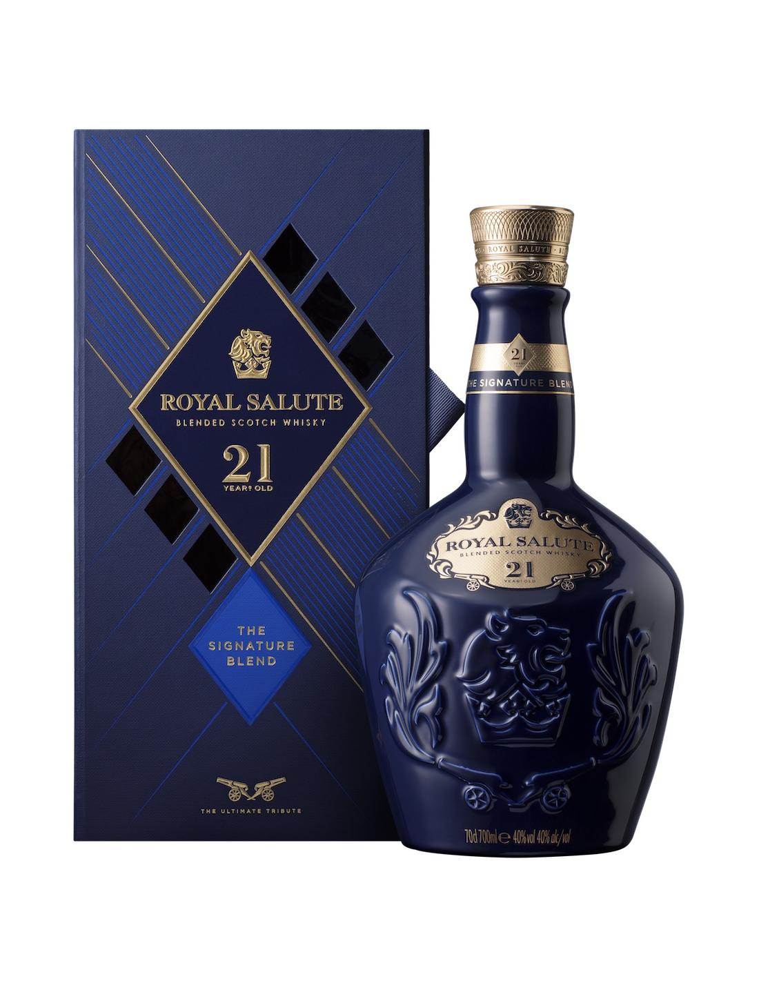 Créé en hommage au couronnement de Sa Majesté la Reine Elizabeth II en 1953, Royal Salute 21 ans d’âge se distingue par son parfum de fleurs d’automne qui précède des arômes de fruits profonds et intenses. Élaboré uniquement avec les meilleurs whiskys, il respecte la tradition unique de la marque qui consiste à n’utiliser que des whiskys ayant patiemment vieilli pendant au moins 21 ans. Un whisky précieux présenté dans son flacon de porcelaine caractéristique, recouvert d’une gravure bleu saphir.